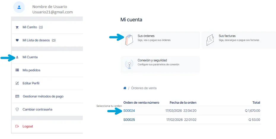 Esto te redirigirá a una pantalla donde encontrarás la sección “Mis órdenes”.